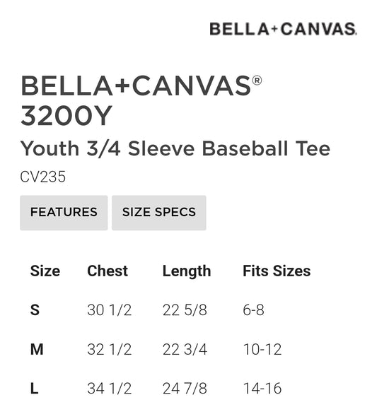 Youth Raglan Sleeve 3/4 Length Shirt